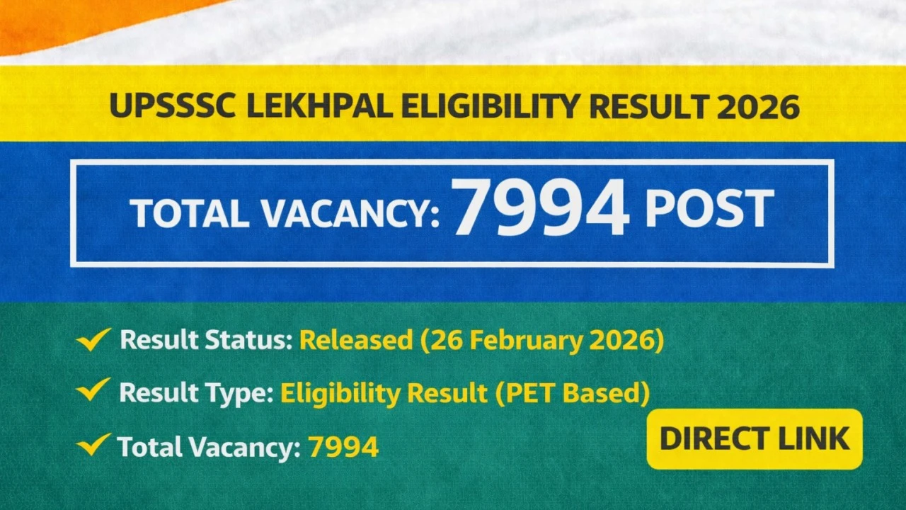 अगर आपने UPSSSC Lekhpal भर्ती 2026 के लिए आवेदन किया था और PET 2025 क्वालीफाई किया था, तो आपके लिए बड़ी अपडेट है। UPSSSC Lekhpal Eligibility Result 2026 आधिकारिक रूप से जारी कर दिया गया है।